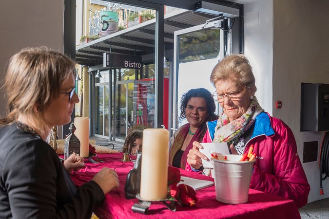 Zwanzig Frauen und Männer erzählen aus ihrer Lebensgeschichte. Jede Stunde empfangen fünf von ihnen einen Gast für eine spannende Begegnung zu zweit. An der Reception im 2. OG kann das Wunschgespräch reserviert werden (Dauer der Gespräche je 15 Minuten).