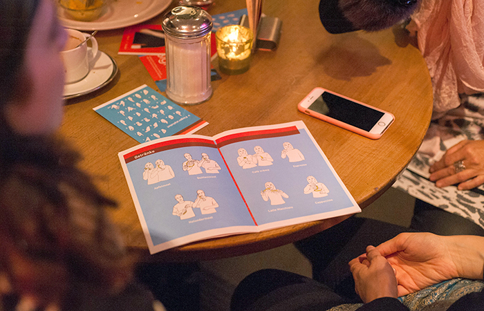 DruckenSeit 2013 finden im Bistro Alte Kaserne regelmässig Treffen für Gehörlose und Hörende statt, bisher unter dem Namen «Café des Signes». Neu heisst der Anlass «Bistro Taktvoll», angelehnt an die Kulturveranstaltungen, die von der Selbsthilfe für Gehörlose und Hörbehinderte «sichtbar GEHÖRLOSE ZÜRICH» und der Alten Kaserne seit vielen Jahren organisiert werden, um den Brückenschlag zwischen den beiden Kulturen zu ermöglichen. Gehörlose und interessierte Hörende treffen sich zum regen Austausch oder einfach nur, um das spezielle Ambiente zu geniessen, das durch die Kommunikation in Gebärdensprache entsteht. Bedient wird in Laut- und Gebärdensprache.