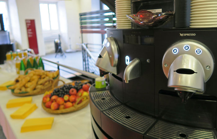 Halbtagespauschale Kaffeebuffet Kaffee/Tee, Mineralwasser morgens mit 1 Gipfeli und Früchten oder nachmittags mit 1 Guetzli und Früchten |